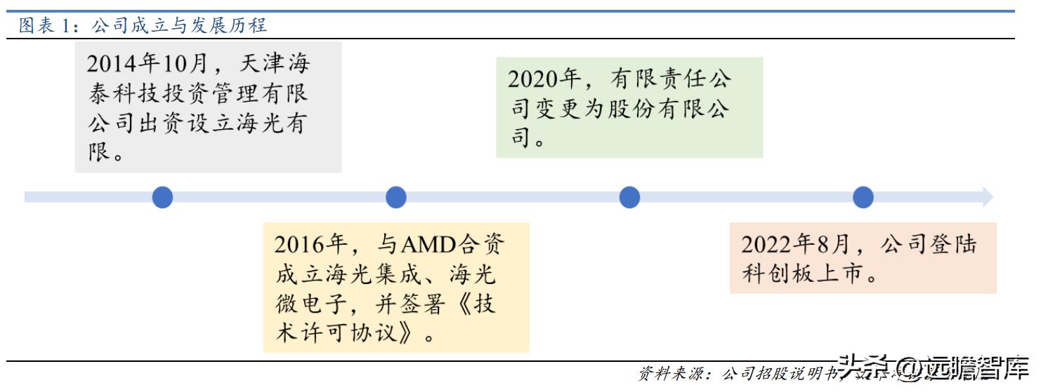 海光信息是一家从事高端处理器、加速器等计算芯片产品和系统的研究、开发的公司,进入市场主流的x86指令集,具有成熟丰富的应用生态环境。回顾海光成立与发展历史,2014年10月,天津海泰科技投资管理有限公司出资3.075亿元设立海光有限。