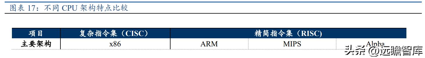 其中,x86架构是复杂指令集的代表,而ARM架构、MIPS架构和Alpha架构等是精简指令集的代表。