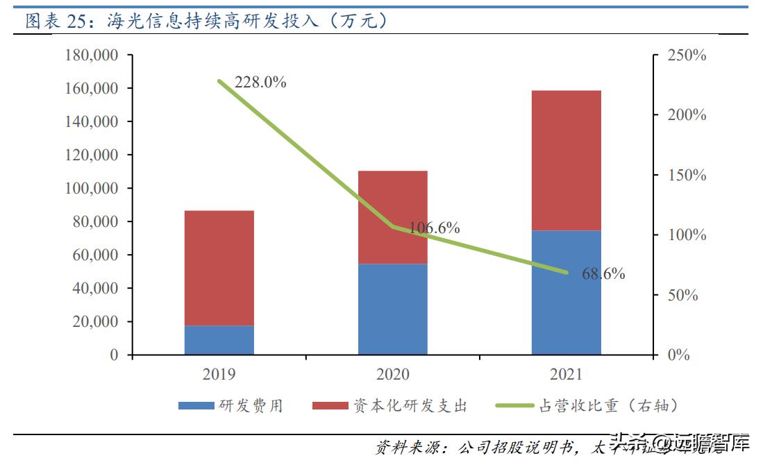 x86架构处理器产品在设计、工艺等方面复杂度较高,公司始终保持较高研发投入,2020、2021年公司研发支出分别同比增长27.6%、43.6%,近3年公司研发支出占营收比重分别高达228.0%、106.6%、68.6%。