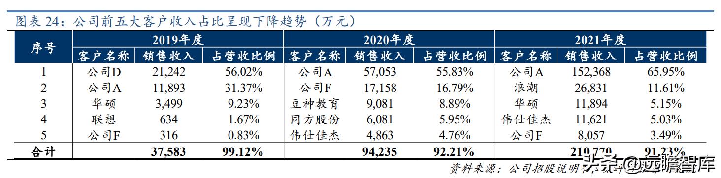 由于与处理器配套的主板、服务器研发周期长,且产品上市后均会经历小批量试用到大批量采购的过程,新用户导入周期普遍较长,因此新产品销售目前仍主要集中于前五大客户,但前五大客户占比呈现出逐年降低的趋势,或表明公司开拓新客户成效逐渐显现。