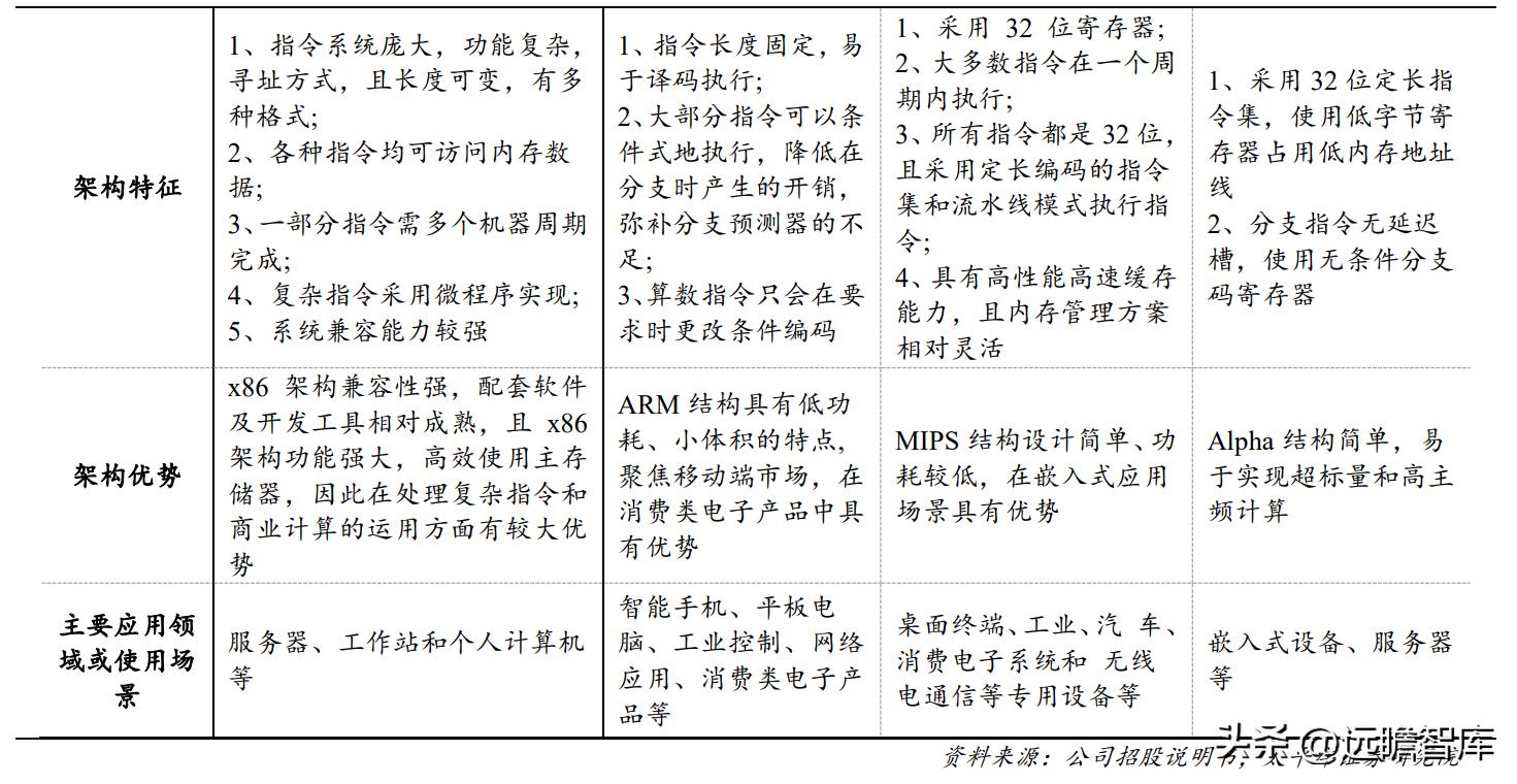 全球主要CPU架构之间各有特色。计算机的程序最终需要转化为“指令”才能在 CPU 上运行,所以采用的指令集对于CPU的设计尤为重要。