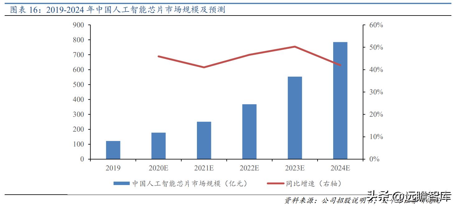 人工智能领域的应用目前处于技术和需求融合的高速发展阶段,在运算加速方面逐渐形成了以GPGPU解决方案为主的局面。根据前瞻产业研究院的数据,未来几年内,中国人工智能芯片市场规模将保持年均40%至50%的增长速度,到2024年,市场规模将达到785亿元。