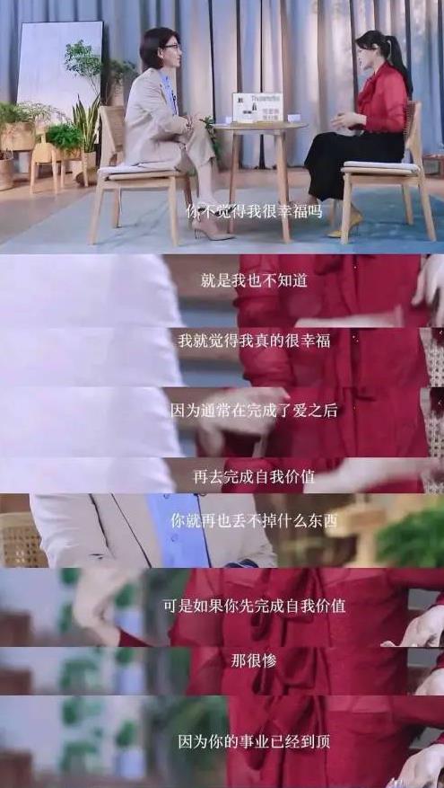 “人在完成爱之后再去追求自我价值就不会失去什么,但是如果先实现自我价值,事业虽然到巅峰,但是一生都爱追求爱,就会很惨,就像梅艳芳。”