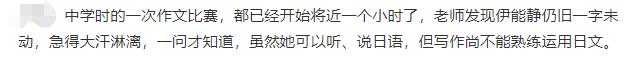 一次在学校参加作文考试,开考将近一个小时,伊能静的卷子上还是干干净净的,只字未动,老师询问了原因才知道,原来她不能用日文把自己的意思表达出来。