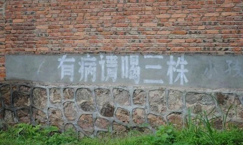 在金钱的驱动下,村销售员们在村庄到处留下了“三株口服液,人类的救星”、“有病请喝三株口服液”等标语。电线杆、墙壁、村坝等地都写满了关于三株的标语。