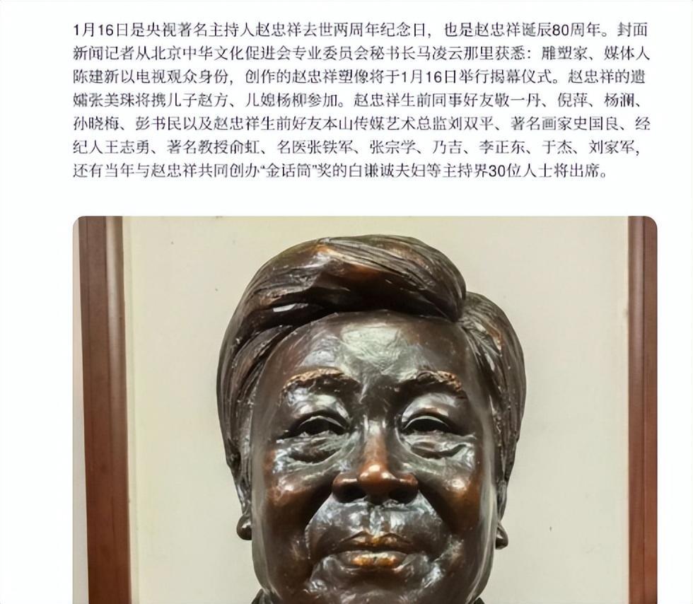 2022年1月16日,赵忠祥的塑像举行了揭幕仪式。