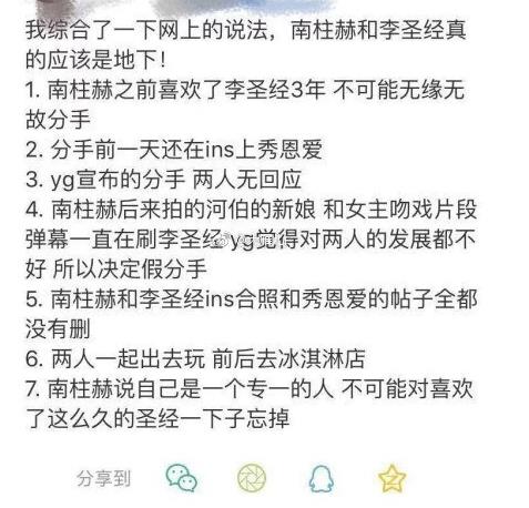 据网友的分析来看,从两人本身在结束恋情之后,南柱赫李圣经在ins上发的合照和本身秀恩爱的文字都没有删除,而且在公司发布分手的消息的时候,两人并没有避嫌,而且两人在公开场合的场合之中也是多次出现。