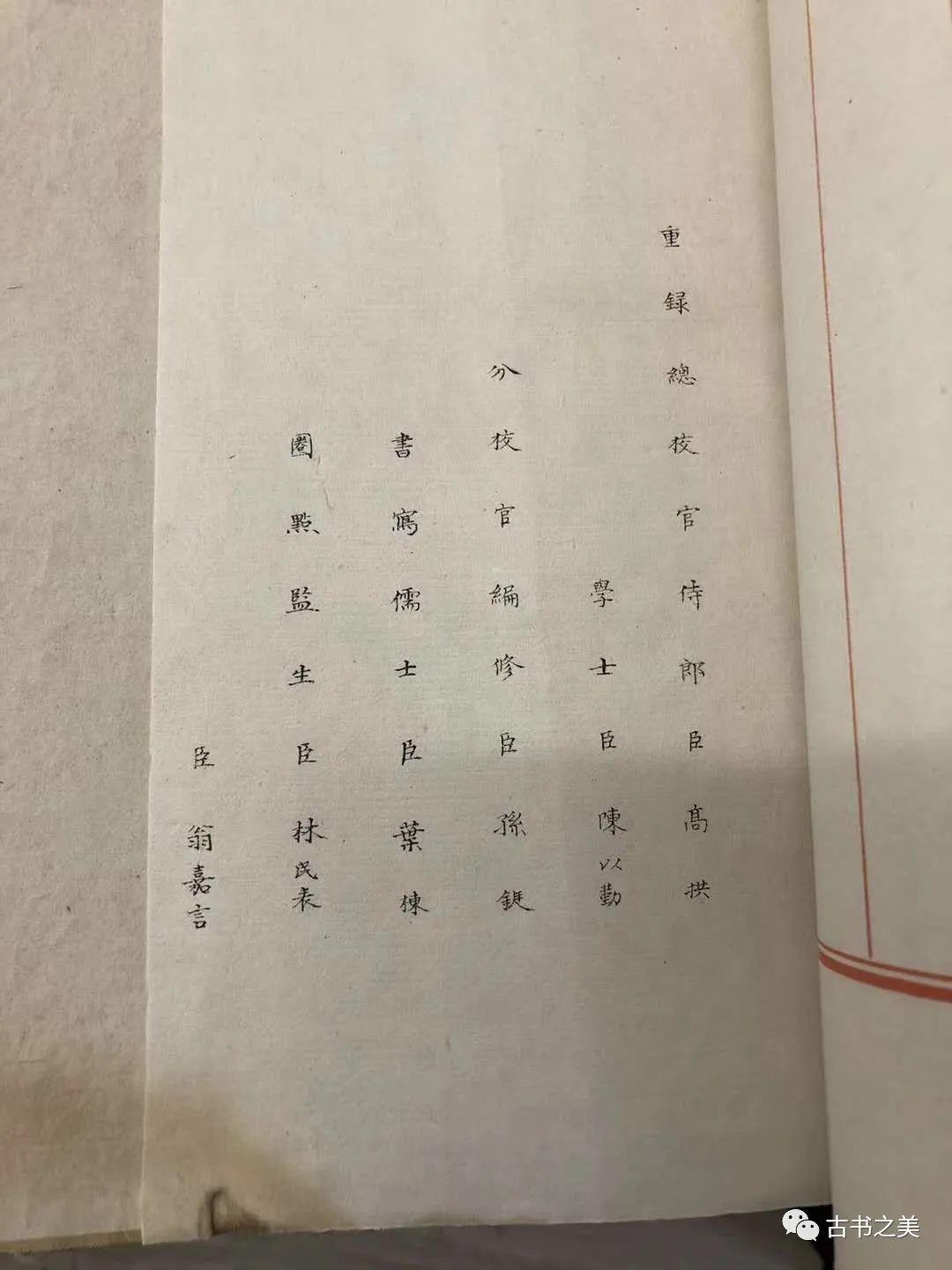 永乐大典的内页与红丝栏。红丝栏皆手绘,翁老师发文说,红丝栏的两头有针眼,当是为画栏之用。