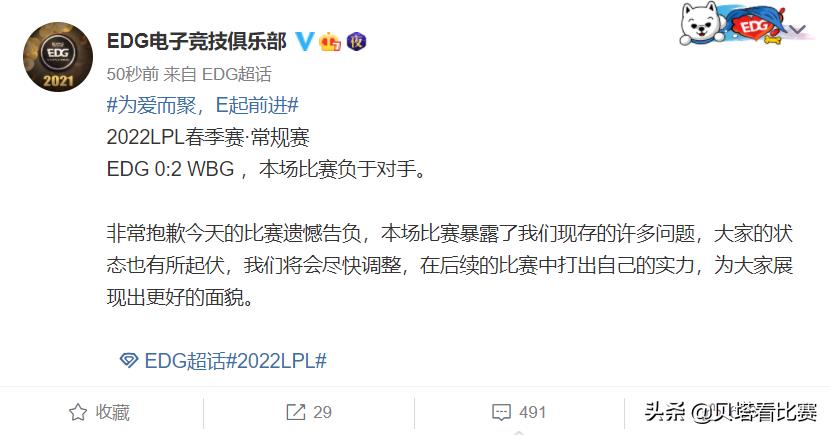 EDG官博公开道歉!败给WBG后,EDG官博沦陷!粉丝质疑:BP太装了