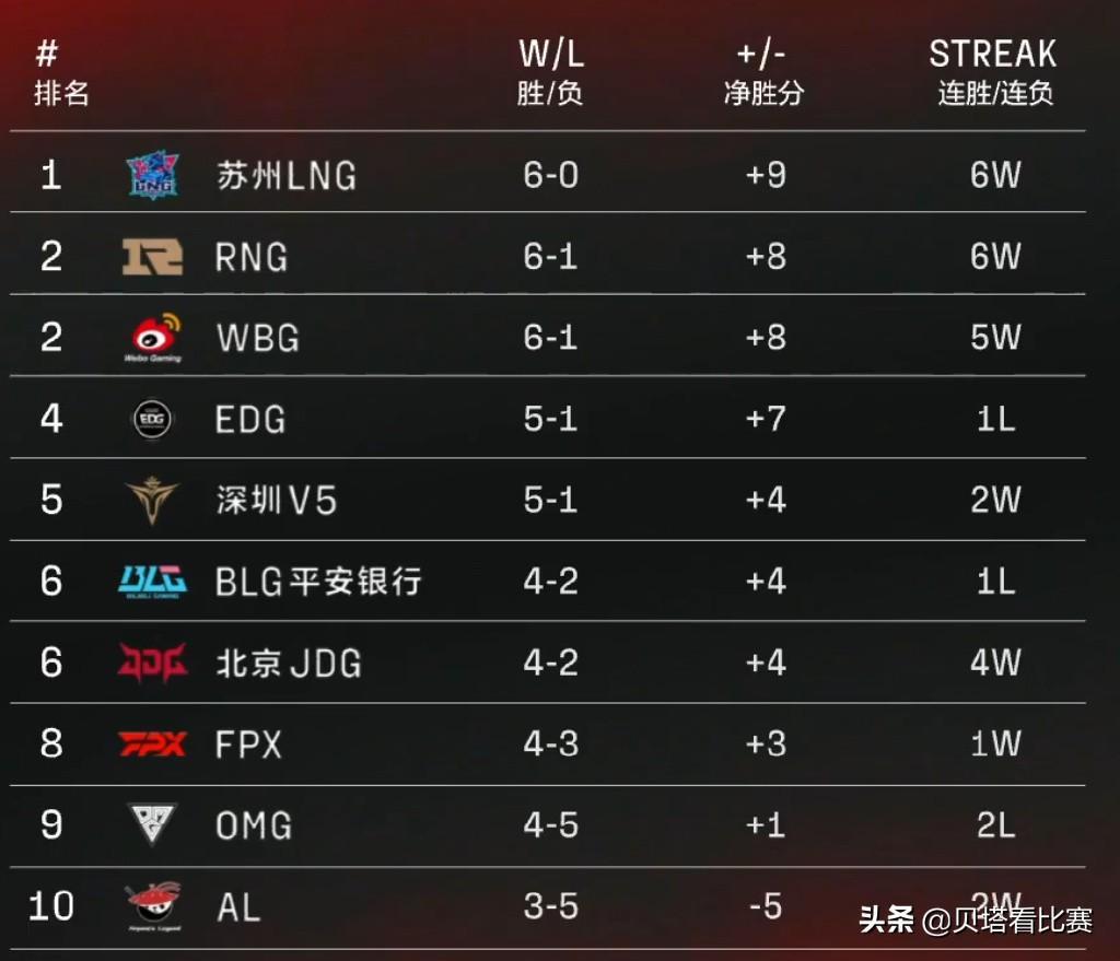 EDG在这场比赛落败后掉到了第四名,虽然只输了一场,但是因为LPL今年强队太多,所以名次暂时不是特别高,四强边缘。而且同分的还有V5,希望这个排名也可以对他们有警醒的作用吧。