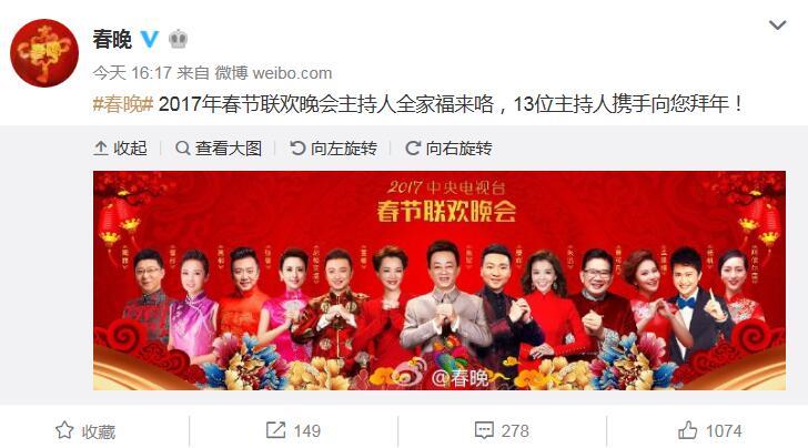 农历新年马上就要到了,春晚官微对外正式确认了主持人阵容。