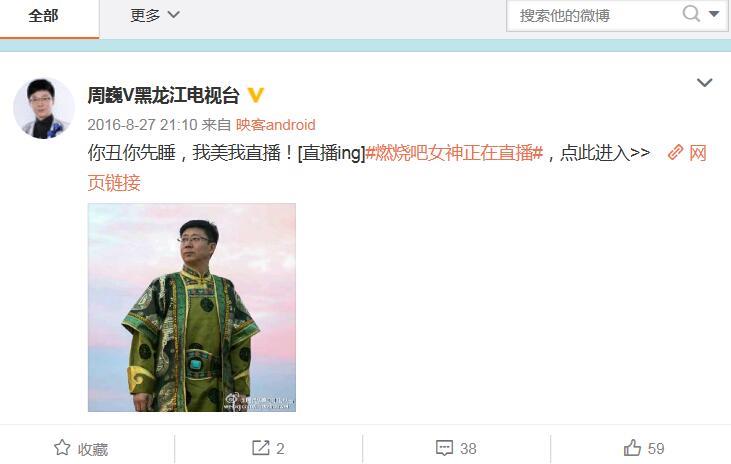 @周巍V黑龙江电视台 有20万粉丝,同样在去年8月份之后,就不再写微博。