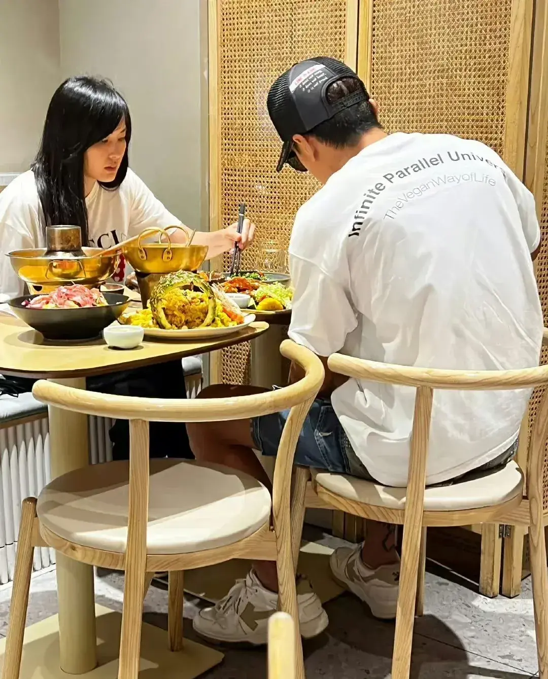 两人还时不时过两人世界,吴尊和老婆一起外出吃饭,点了好多菜,看起来都好有食欲!夫妻俩都穿着白T恤,看着好年轻!