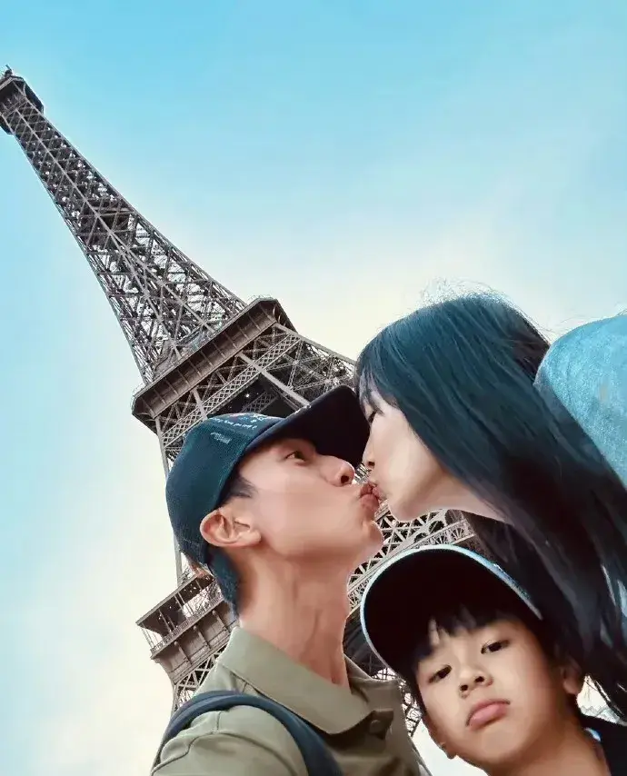 吴尊一家四口在巴黎的随拍照,与妻子在埃菲尔铁塔下亲吻,超甜蜜,夹在中间的Max无奈的表情太搞笑。会疼老婆的男人都很幸福。