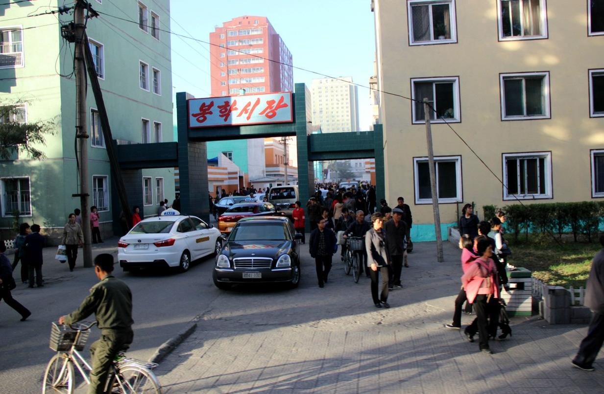 当一辆新款立标奔驰从我们身边经过,在路旁执勤的漂亮女交警都朝它敬礼,目送车辆远去。可想而知,豪车里面的乘客不是一般人。除了豪车让我感兴趣,朝鲜街头的中国车也是一大亮点。很多中国车被换标后,摇身变成了朝鲜的国产车,让人啼笑皆非。