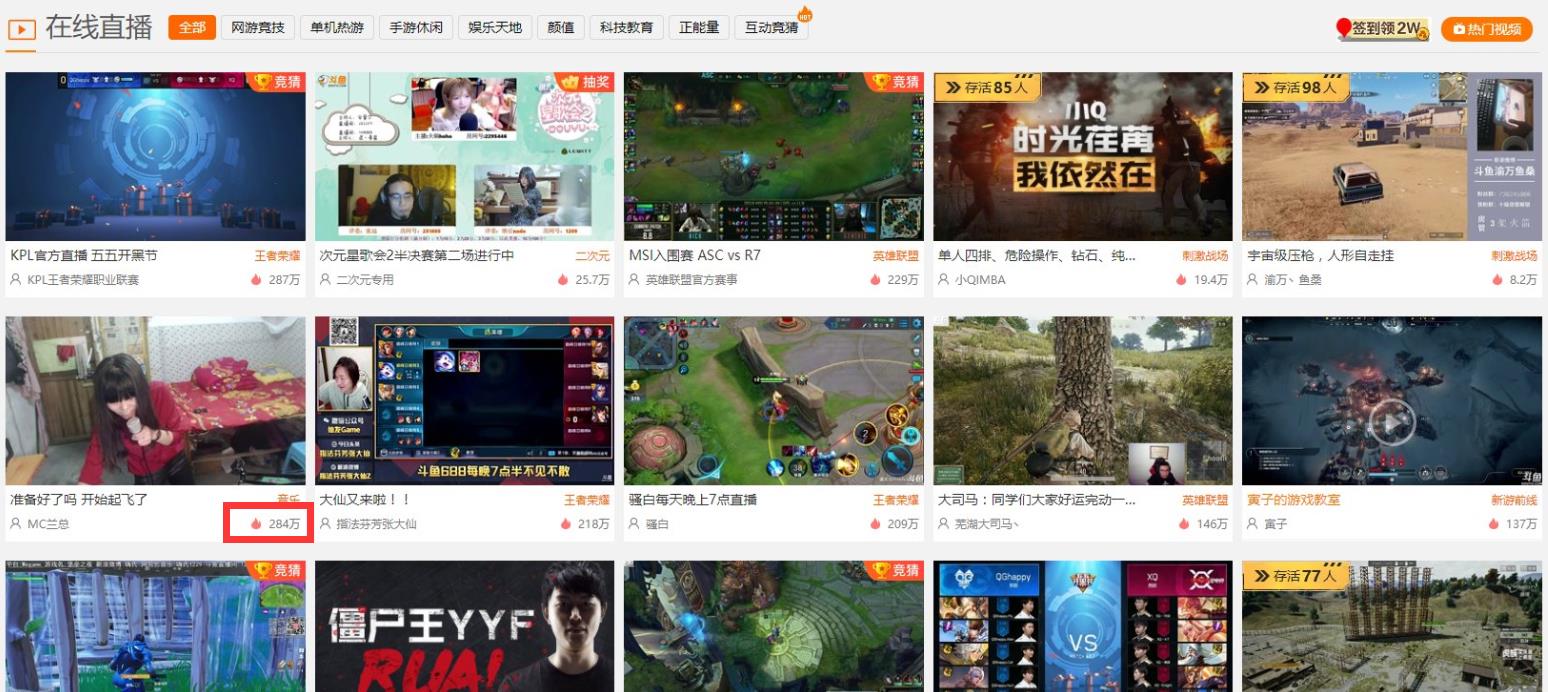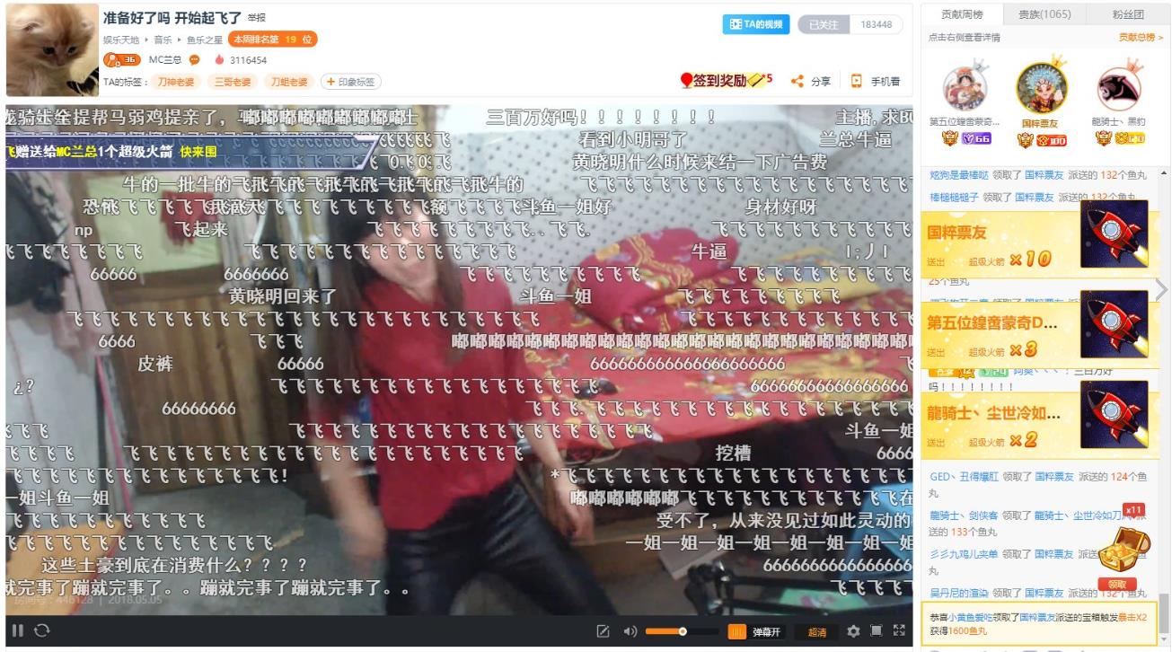 斗鱼“一姐”兰总回归后人气颇高 获土豪支持直播间热度飙升290W