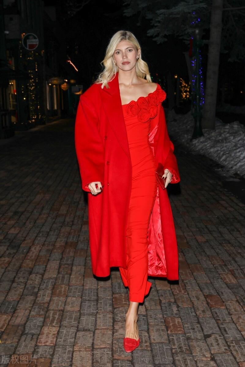 超模德文-温莎外出参加活动 红色look时尚吸睛