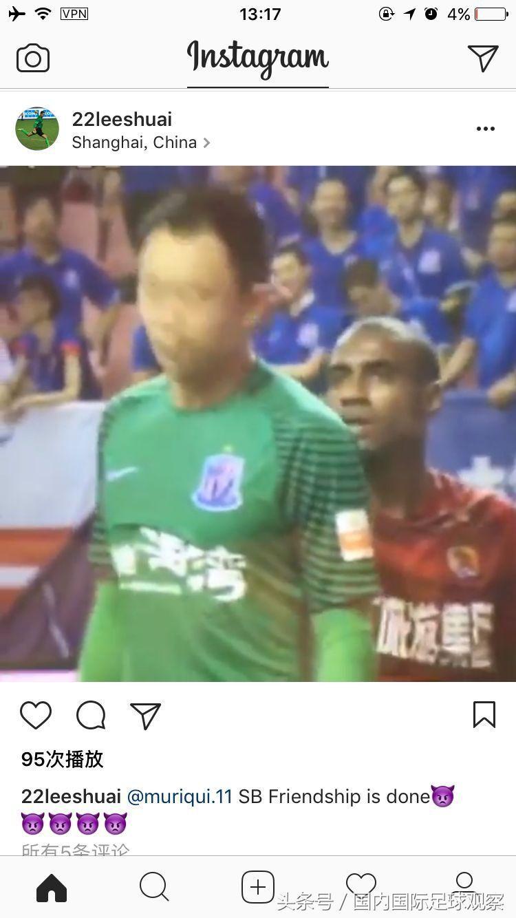 上海申花门将李帅在与广州恒大的比赛中被穆里奇拍了一下,他把相关视频发到了Instagram上,艾特了穆里奇的Instagram,SB这个词又一次出现在中超球员的交流中。球迷通过留言点评了这段视频,一位球迷称:“友谊的小船儿要翻了。”