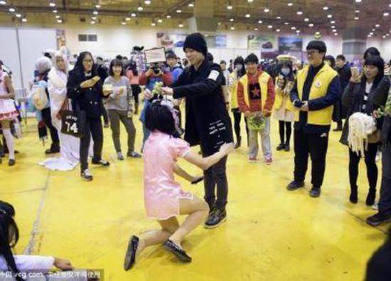 青岛动漫节网红现身粉丝下跪头上真长草了