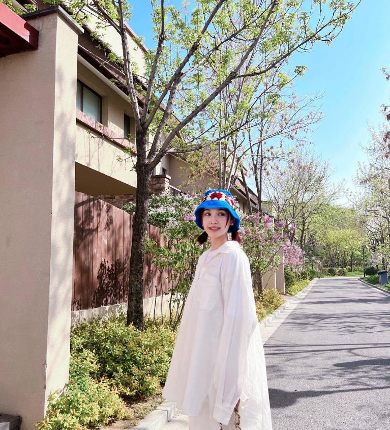 这是杨丞琳带蓝色渔夫帽的样子,很特别的点缀。
