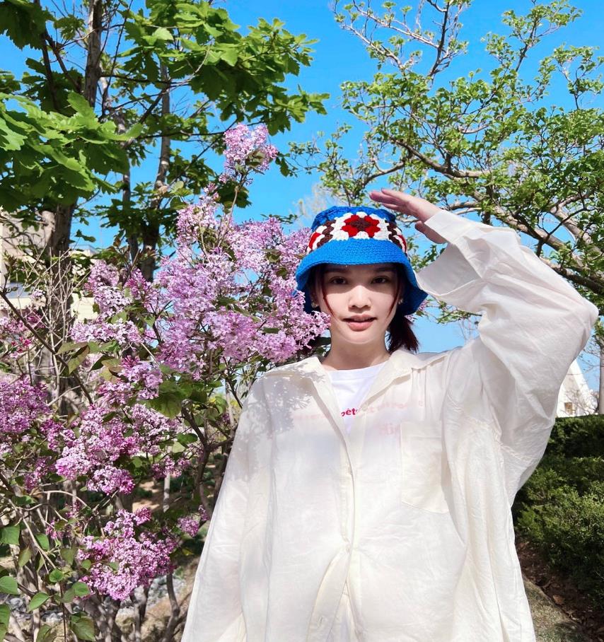 杨丞琳和花朵的合照,还带着一丝的少女感。