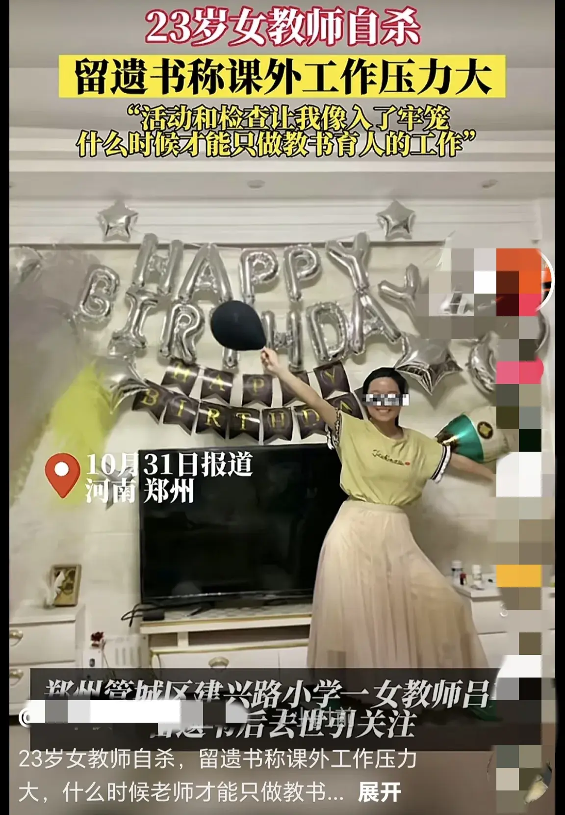 23岁女教师跳楼自杀,留遗书称工作压力大,校方拒绝家属进校