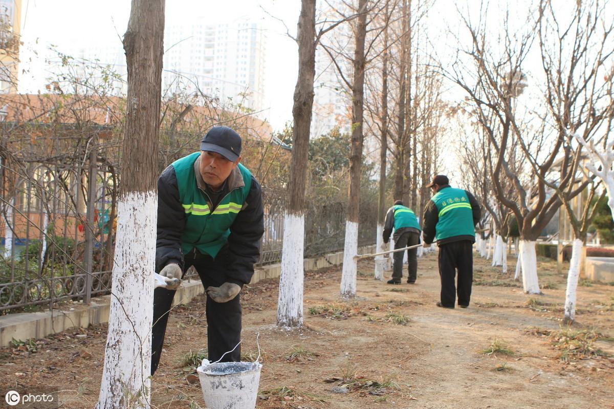 其次,树干涂白可以防止冻害,在冬天白天和晚上的温差很大,树干是黑褐色的,白天就容易吸收热量,这样更大的温差就有可能导致树干冻裂。而树干涂白后,白色的石灰会反射掉不少阳光,那么温差就减少了,树木也就不容易冻裂了。