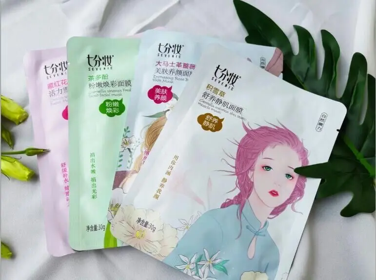 不同功效的面膜上面不仅有说明主要的成分,还画了一个特别赏心悦目的小姐姐。