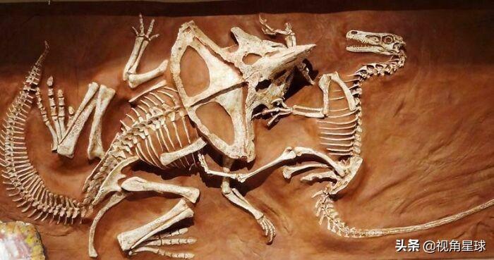 #7. 保存在沙子中的猛禽龙和原角龙搏斗化石!