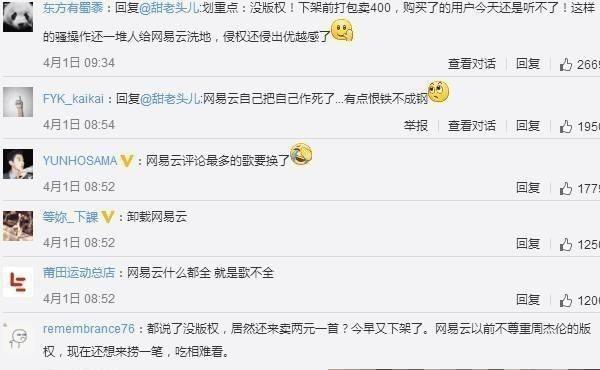 周董都粉丝更是遍地,然而就是这样,网易云在愚人节那天宣布,要下架周董都所有歌曲, 很多同时忠实网易云和周董的粉丝瞬间就炸了,更有网友直接表示:没有周杰伦,要你网易云何用!直接卸载!自己作死自己!