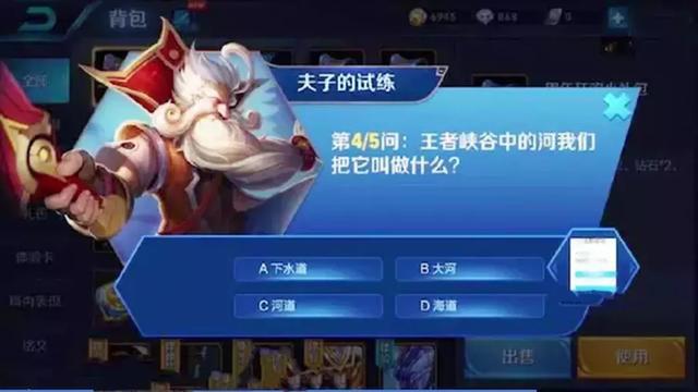 大家是不是觉得前面的题很简单,那就来看看这个高难度的题吧。这一题问王者峡谷的河我们把他叫作什么?四个答案分别是下水道,大河,河道,海 道。聪明的你有没有一眼看出正确答案呢?不妨留言告诉我吧,在线等,急等哟!!!
