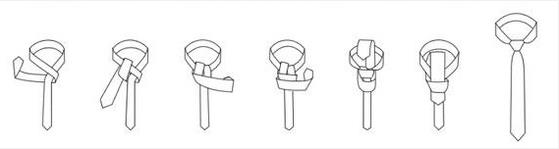 大端在左,小端在右,大端在前,小端在后,呈交叉状,大端由内侧向上翻折,从领口三角区域抽出,继续将大端翻向左边,即大端绕小端旋转一圈,大端由内侧向右边翻折,右边同左边一样,绕小端旋转一圈,整理好骨架,拉紧,从正面向左翻折,成环,最后将大端从中区域内侧翻折出来,拉紧,就完成了。可以说温莎结是常见的几种打法中较为复杂的一种,适用于商务、政治等特定场合。