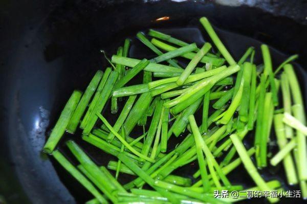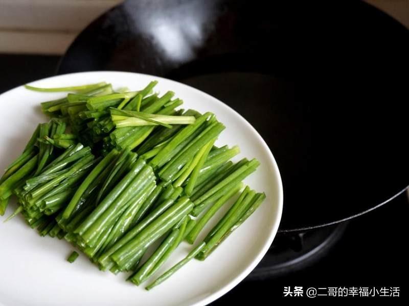 步骤 2,小葱洗净,切掉葱白部分不要,绿叶部分切成长段,