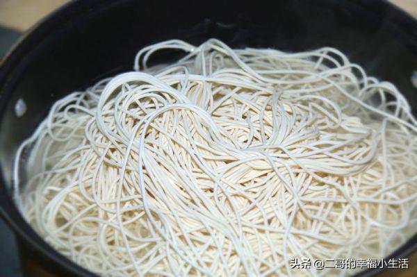 步骤 5,另取锅注入清水,水沸腾了之后加入面条,面条煮软之后(里面还有白心40秒左右)快速捞出放入碗中。