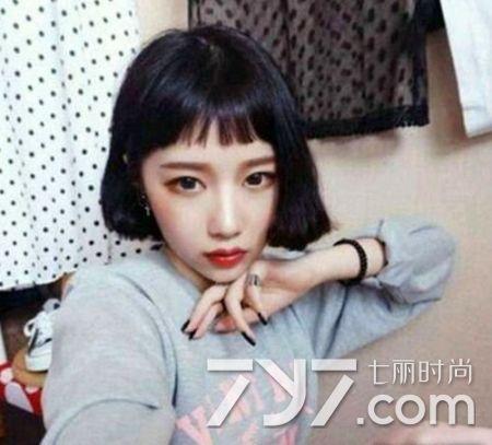 自然黑色的波波头看起挺复古大气的,用一款露眉短空气刘海来彰显出俏皮范儿,而且特别二次元的感觉,再配上内扣的波波头,岂不更可爱。