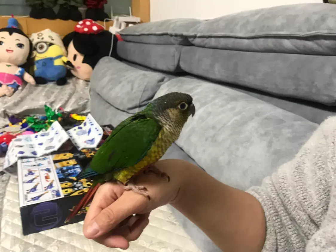 这是一只手养的鹦鹉,因此可以直接拿在手上把玩,可以训练它好多技能,也可以教学说话。所以我打算好好教它。