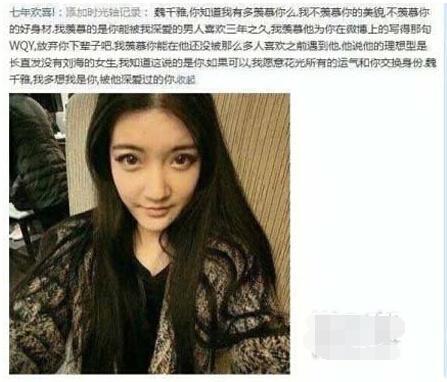 有关媒体透露,魏千雅是鹿晗在北京读高中时候的同学。鹿晗当时从07年到10年三年间一直在追求魏千雅。但魏千雅始终没有同意。