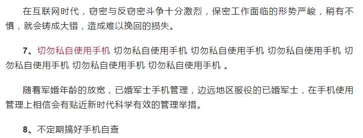 手机就是一把双刃剑,在满足官兵生活需求的同时,也面临着诸多泄密隐患,一旦发生泄密,很可能会损害国家利益,影响国家国防建设的发展。