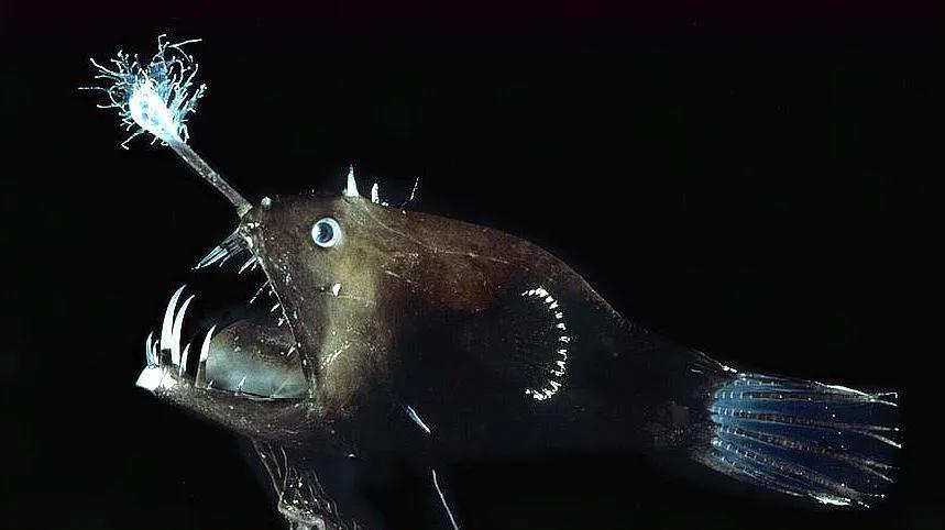 算是长得相当可怕的一种鱼了,靠着头上的小灯笼吸引猎物,然后用它的血盆大口吞下,据说磁性雄性结合后会融为一体,虽然看着可怕但是据说是一道美味。