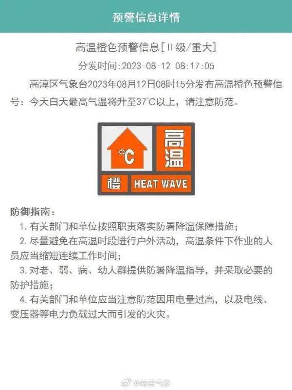 刚刚,南京发布高温橙色预警