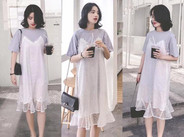 搭配3:八字刘海娃娃头+吊带连衣裙+纯色t恤