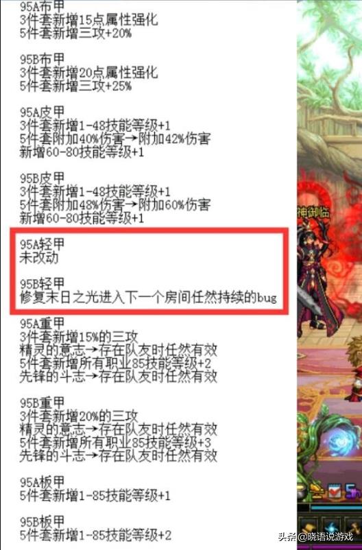 95轻甲套没有任何的变化不说,还修复了会将超界五特效带到下一个房间的bug,只能说还好没有削弱吧……
