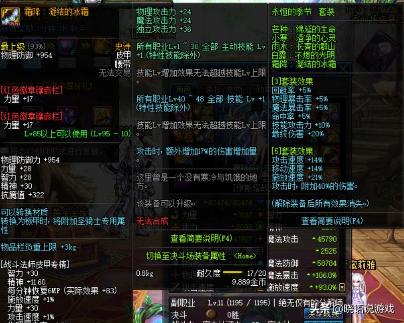 95级皮甲套永恒的季节,在升级成为超界五之后,新增1~48级技能+1,60~80技能+1,附加伤害从48%变为60%。虽然皮甲改版之前也是比较弱的一套,不过这次的增强幅度还是非常大的,对于小技能和被动的增幅更加强大!