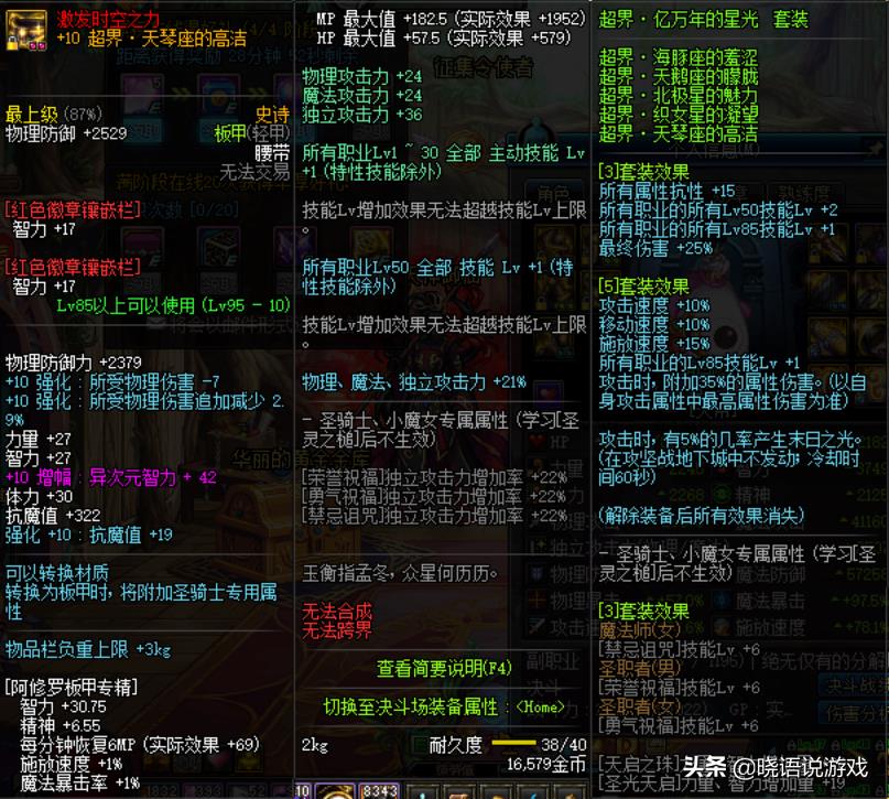 95板甲套的优势一直都在于续航能力,这次增强板甲套,新增1~85级所有技能+1,升级超界五1~85所有技能等级+2。当然并不知道这个属性能否对于奶爸奶妈触发,可以的话,绝对是对于奶量的一次大提升。