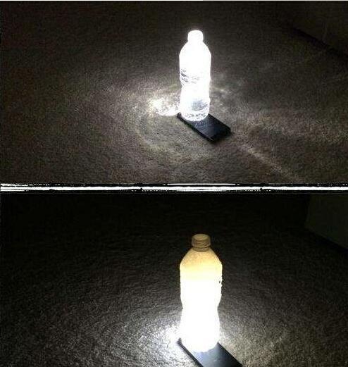 ▼10. 没有小夜灯的时候只要开启手机的手电筒功能,然后在上面放一罐矿泉水就能用相同的效果,如果在水瓶中装牛奶就会是柔和的光线。