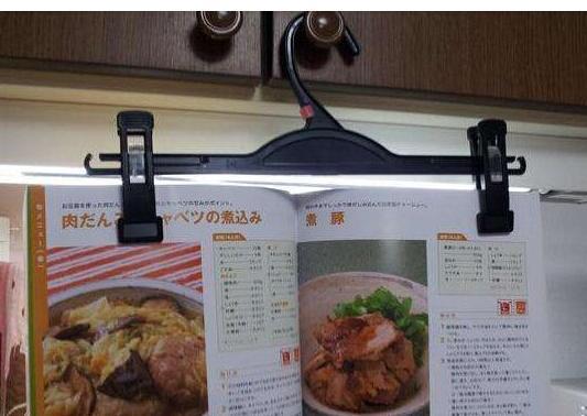 ▼5. 可以把衣架用来固定食谱,做菜时更方便。