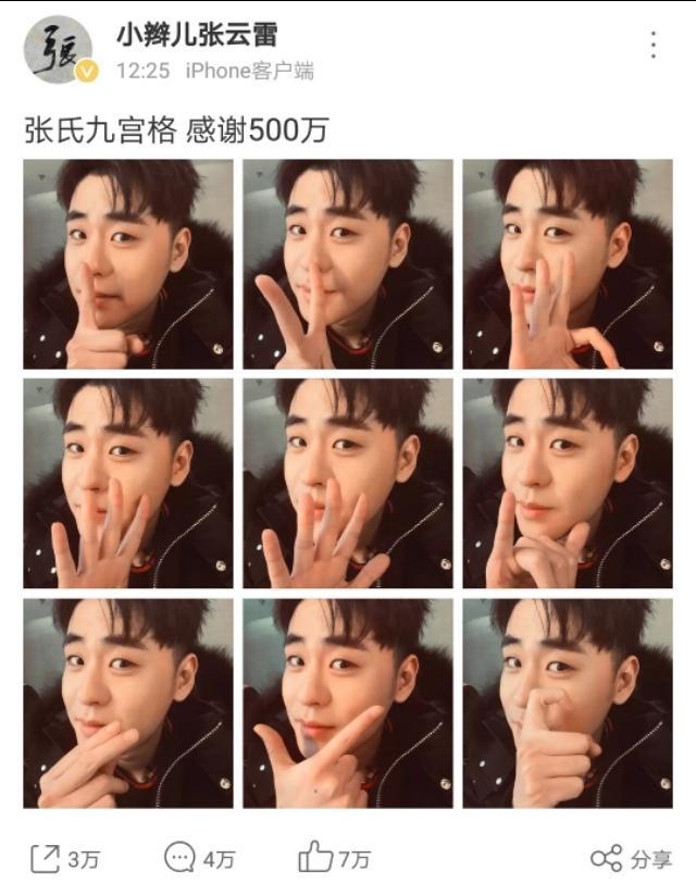 张云雷粉丝突破五百万,可爱的二爷终于在大家盼星星盼月亮的期盼中发了九宫格。