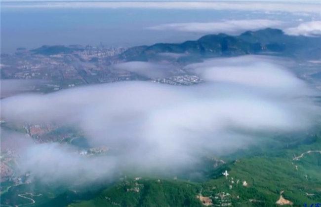 花果山出现雾海奇观,雾海中的花果山玉女峰下方呈现一尊佛光。佛光时隐时现,奇特的云海佛光奇观,炫目的佛光给美丽的花果山玉女峰披上一道神秘的色彩。