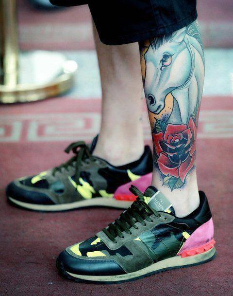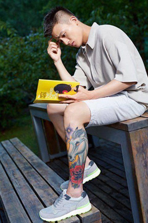现在的娱乐圈,就是小鲜肉当道的时候,各种电影电视剧用小鲜肉拼颜值。在众多小鲜肉中,欧豪是一个非常个性突出的人。首先要说的是他身上最显眼的纹身小腿上的纹身:在他的小腿上是非常好看的彩色纹身,由马纹身、玫瑰纹身,还有一个女性肖像纹身,应该是一个艺妓,最下面还有一个“豪”字纹身,这个豪应该就是他自己的名字。欧豪第二处纹身是他右腿上的“生死有命,富贵在天”八字草书纹身,也许喜爱运动的欧豪是贝克汉姆的忠实粉丝呢!