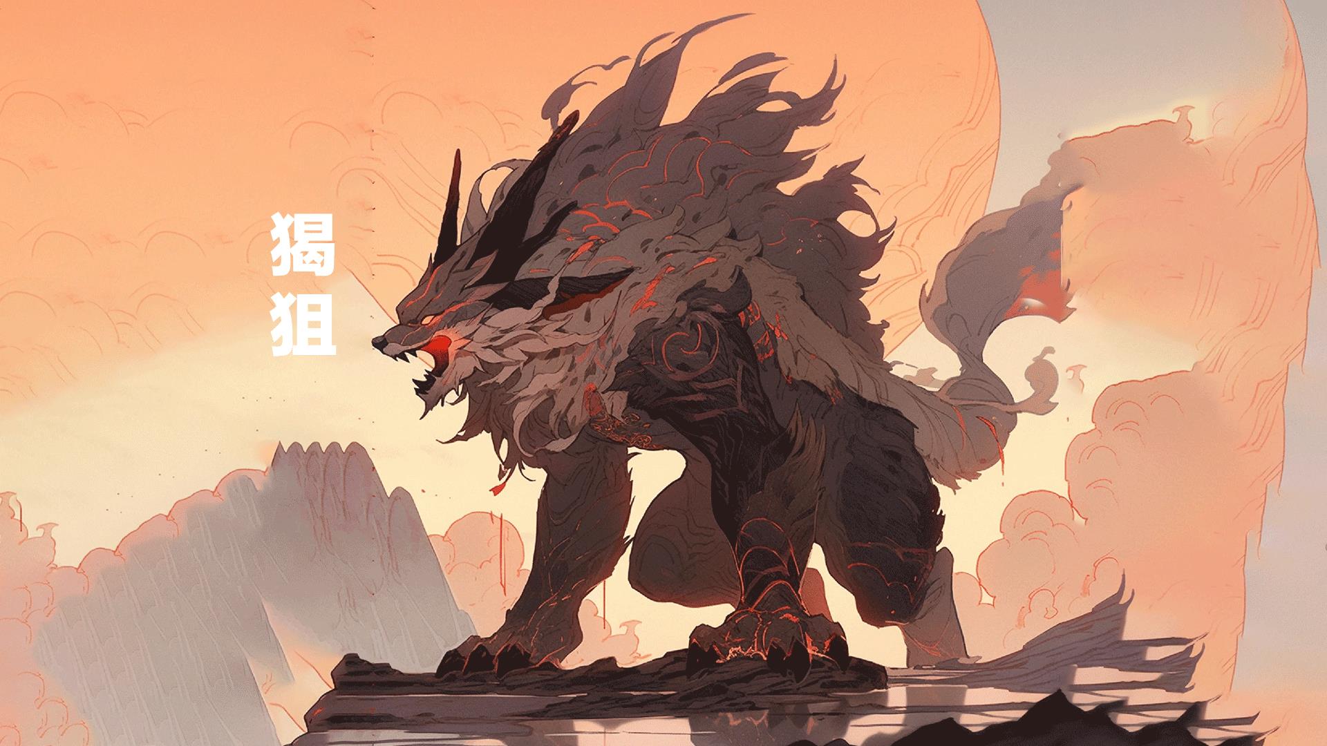 山海经异兽:猲狙,外形像狼叫声如猪,善于隐匿